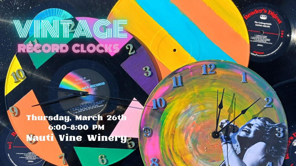 Vintage Record Clock Class, Thursday, March 26th, 6:00-8:00 PM, Nauti Vine Winery, 3950 S Main St, Akron, OH 44319