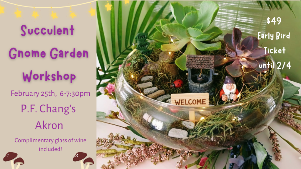 Succulent Gnome Garden Class, Wednesday, February 25th, 6-7:30 PM, P.F. Chang’s, 3265 W Market St #100a, Akron, OH 44333