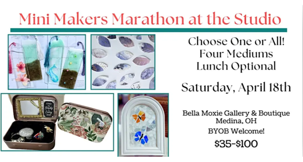 Mini Makers Marathon, Saturday, April 18th, 9:00 AM – 4:00 PM, Bella Moxie Boutique, 139 N. Court St, Medina, OH 44256